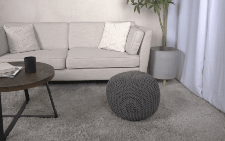 Bordeaux Knitted Cotton Round Pouf, Gray